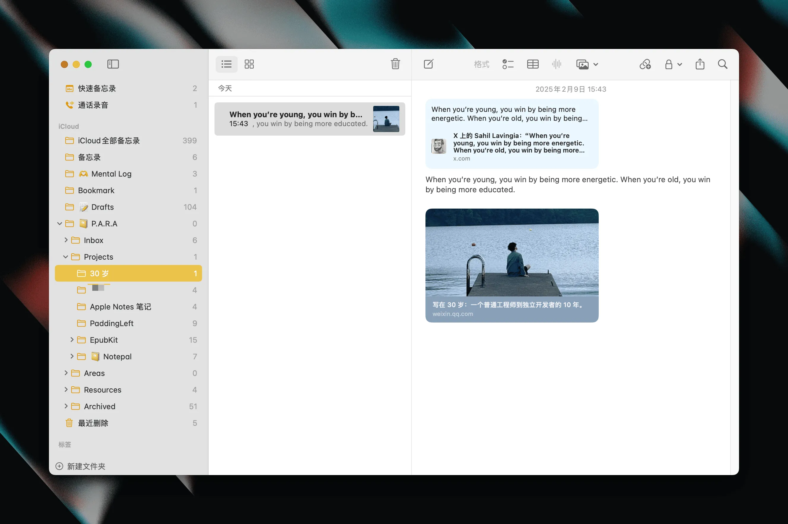 在分享方法论之前,我想先解释为什么我选择了 Apple Notes. 我认为 Apple Notes 有很多优点。