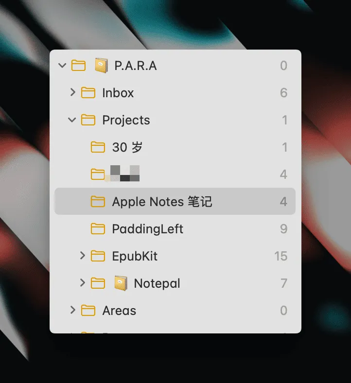 我在 Apple Notes 中会单独建立一个 PARA 目录: