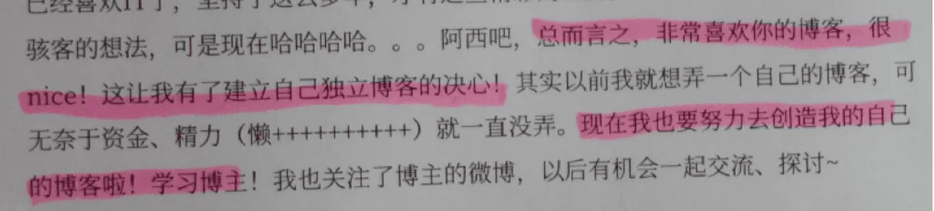 对我来说,有没有活下去的勇气,取决于我在世界上有没有创造价值。这些读者来信是我写博客收获的最宝贵的财富。