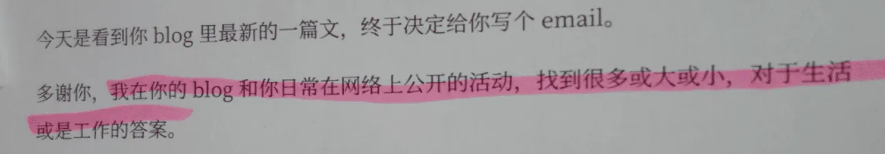 时隔几年再看来往的信件,无论是提到的这位母亲,还是其它特意发来感谢的读者,他们让我收获到的是,我写的文字确实帮助了一些人;五年来我坚持写独立博客是有意义的;这些来信让我意识到我活在世上还是有一点微不足道的贡献。所以我最开心的是看到来信里面提到的,我对读者的影响是什么。